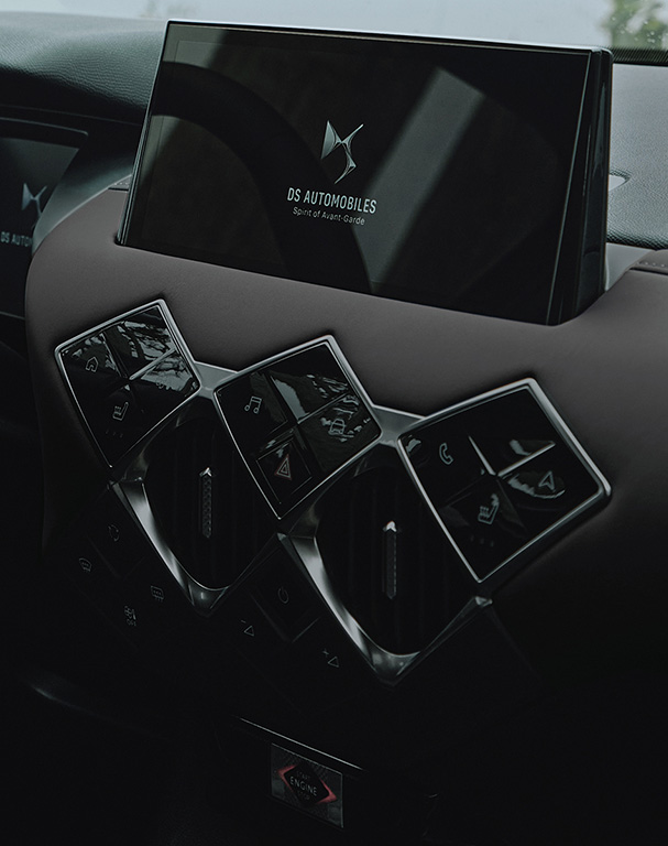 - Interieur in schwarzem Alcantara® mit DS PERFORMANCE Line Emblem auf dem Armaturenbrett